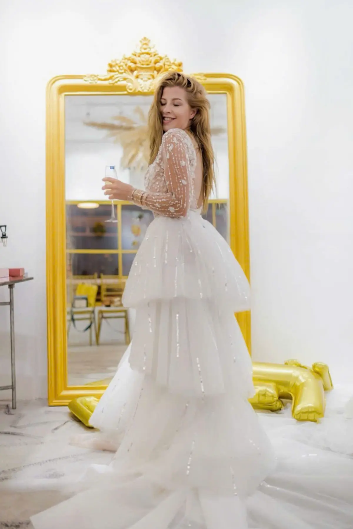 We work closely with each bride to create a dress that reflects her personality and vision for her special day.
