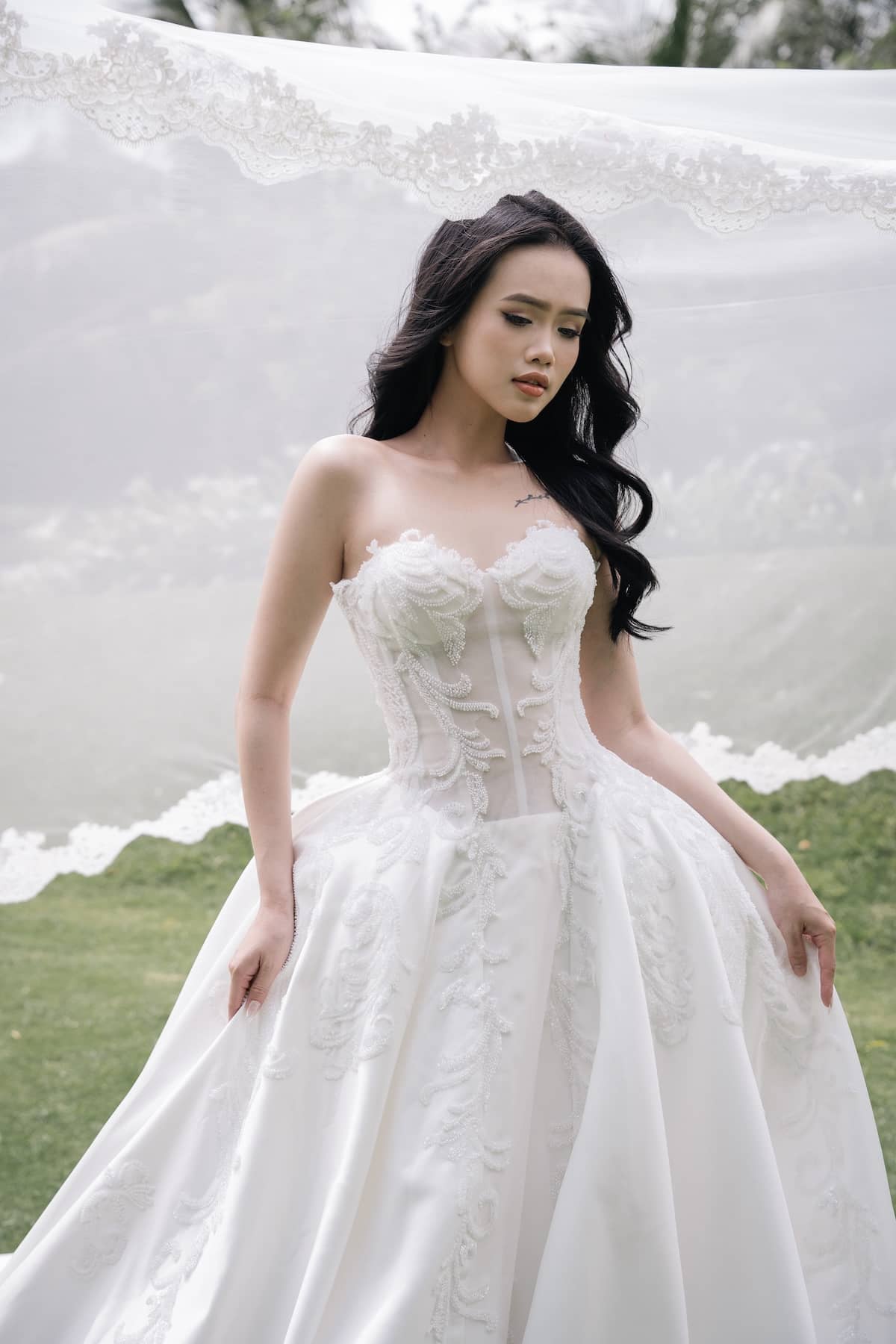 Éclat Solairée begins with La Prima Luce: luminous, powerful and untamed in grandeur. Designed for brides who seek European romance and technique, every gown flows like the first light.